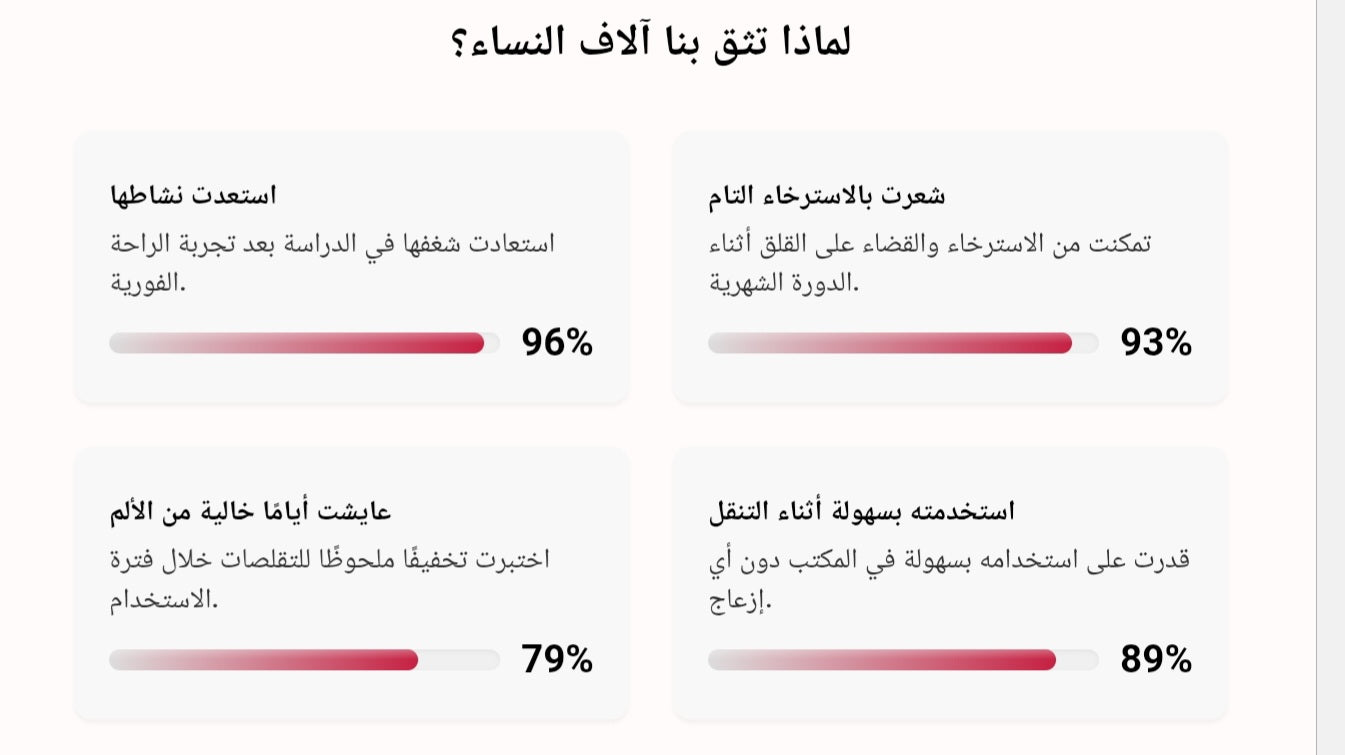 اختاري الحل الفعّال والمبتكر الذي يجمع بين الحرارة والاهتزاز لتخفيف آلام الدورة الشهرية، مما يمنحك السيطرة والراحة في كل لحظة من يومك.